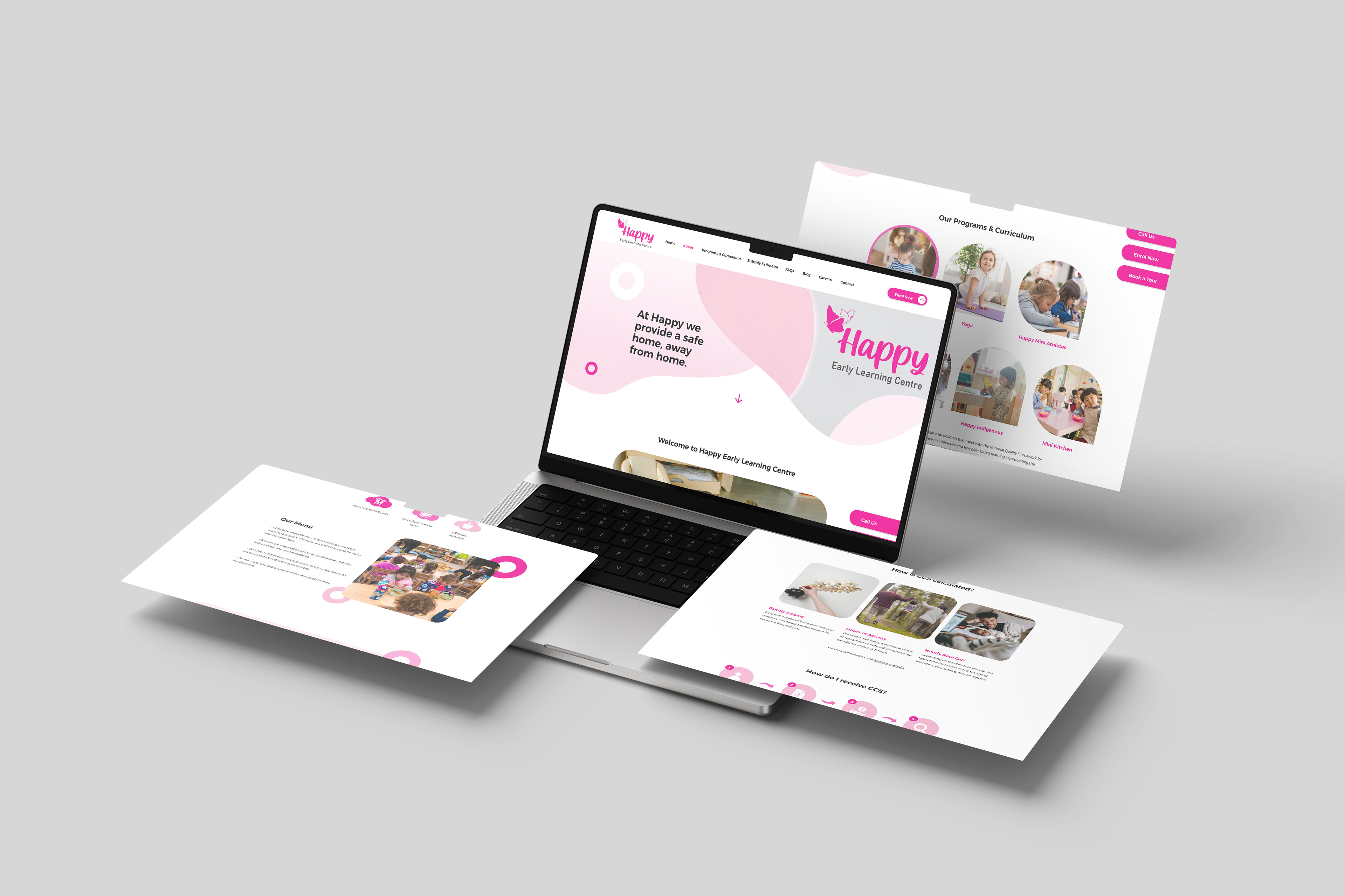 This project features a comprehensive rebranding and digital transformation for Happy Early Learning Centre, a childcare provider dedicated to creating a "home away from home" environment. The goal was to modernize their visual presence while maintaining a sense of warmth, playfulness, and trust.